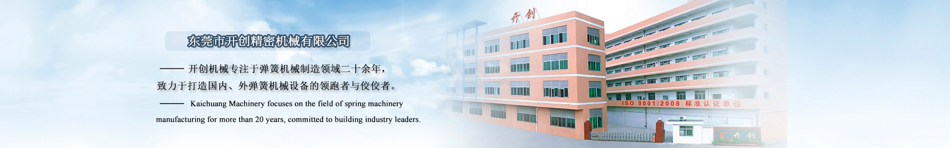 東莞市開創精密機械有限公司(簡稱"開創機械")是中國機械工程學會彈簧技術學組會員,公司成立于2003年,是一家集研發、設計、生產、銷售與服務于一體的彈簧設備生產型企業,是目前國內自主開發數控彈簧機種類最完善、覆蓋廣的彈簧機械制造廠家之一。其中,主導機型涵蓋了線徑φ0.15-20.0mm之間二十多種不同型號的電腦彈簧機產品,比如數控高速卷簧機(常規壓簧機與多軸壓簧機)、數控萬能彈簧機(常規八爪彈簧機與轉線彈簧機)與無凸輪彈簧機(包括十軸至十四軸無凸輪機)等數控彈簧機設備,近年新上市機型KCT-1008深受客戶喜愛,并配套有多種型號的全自動送線架以及彈簧機刀具/配件等 。